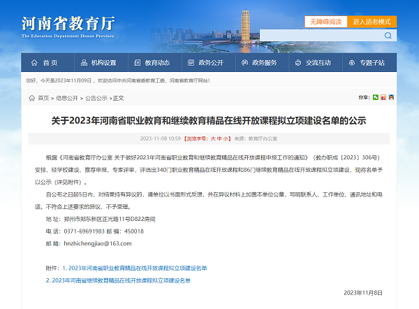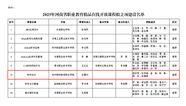11月8日,河南省教育厅办公室下发了《关于2023年河南省职业教育和继续教育精品在线开放课程拟立项建设名单的公示》,我校财经商贸学院院长王国付教授主持的《财务会计》课程获得立项建设,实现了我校教学质量工程项目在省级层面的新跨越。