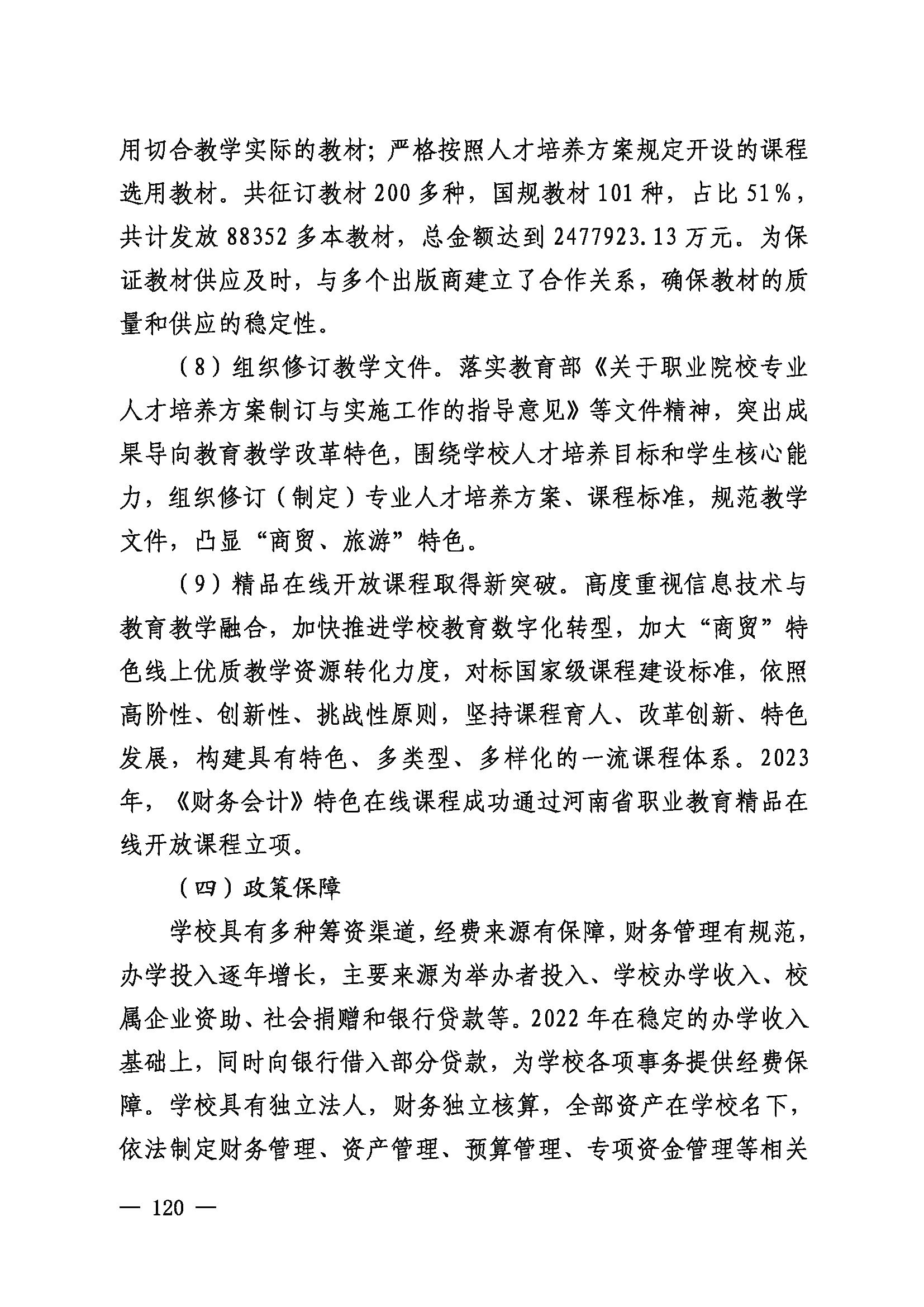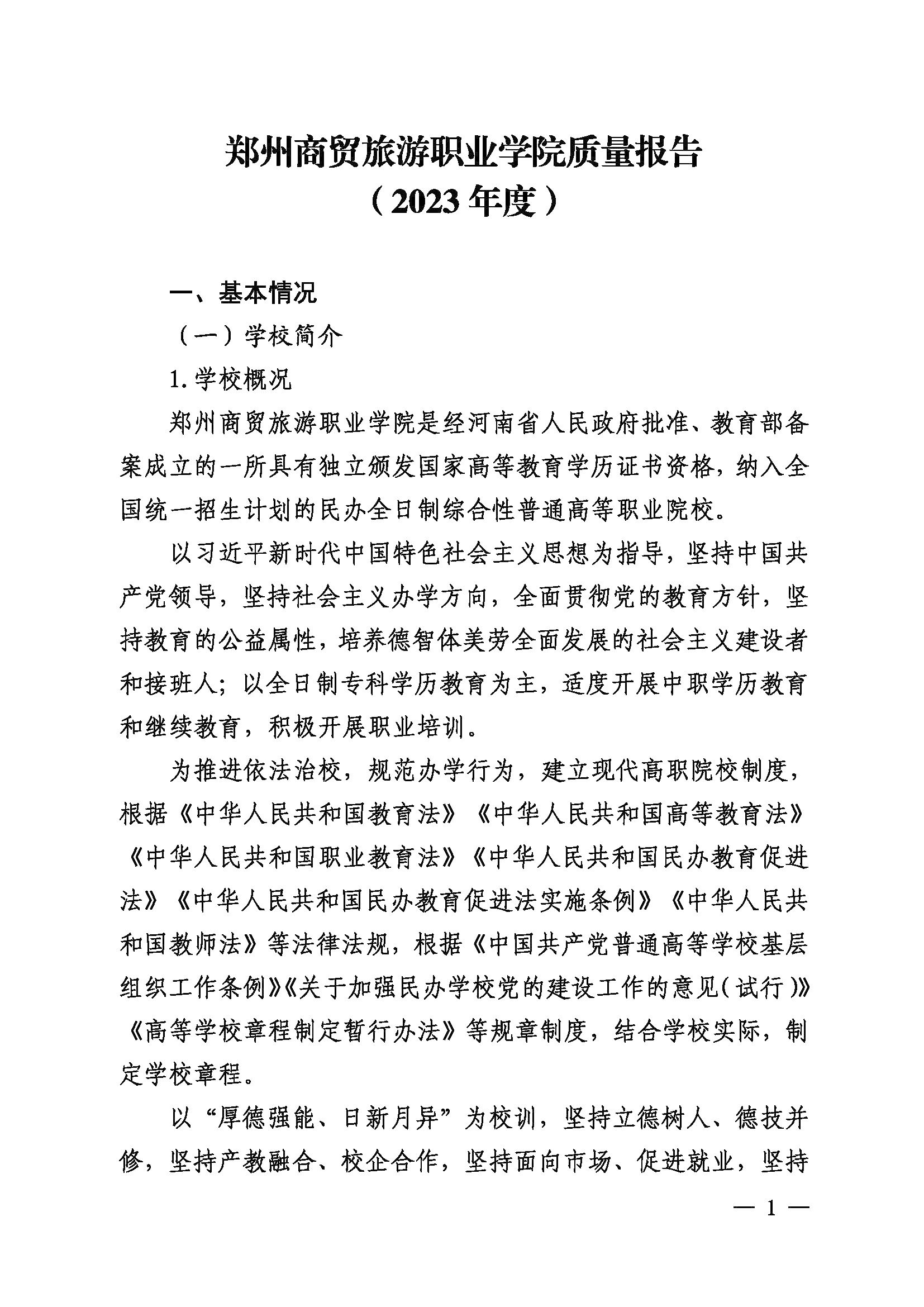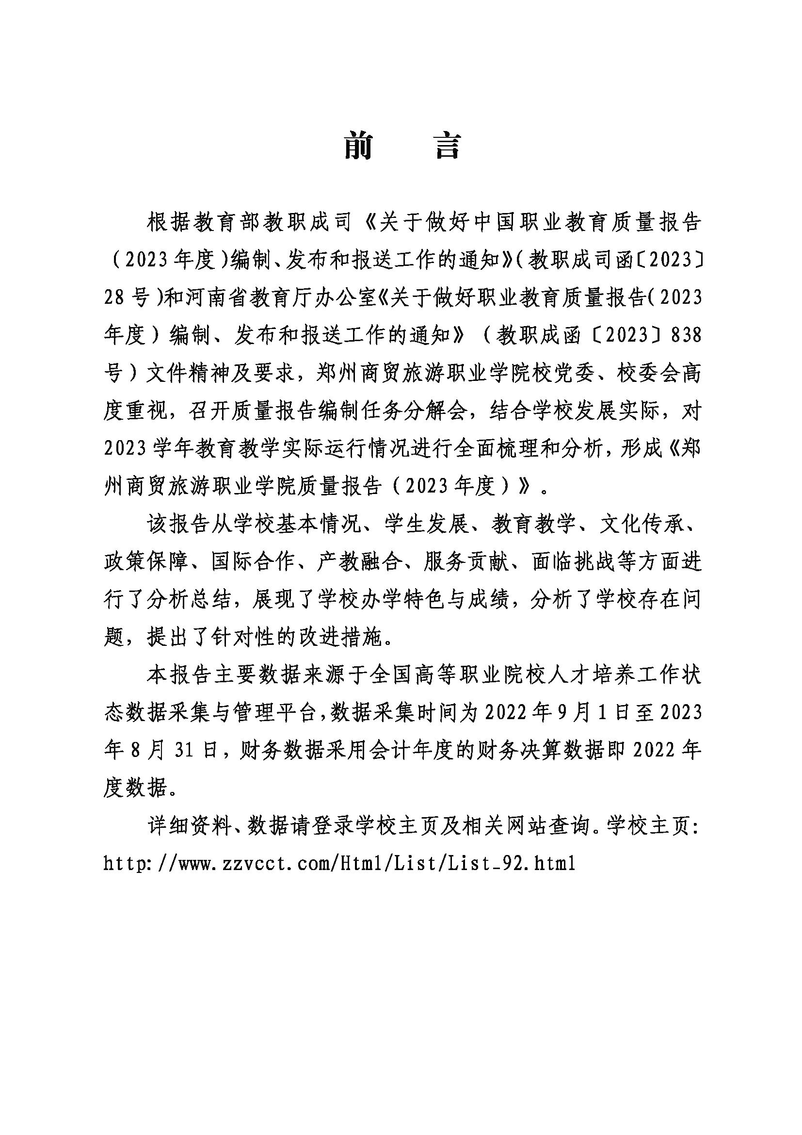 郑州商贸旅游职业学院质量报告(2023年度)