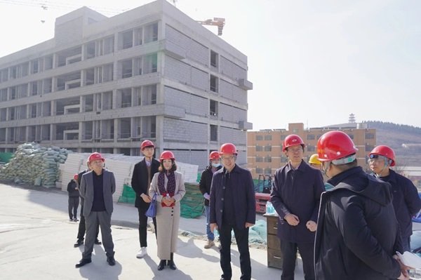 张睿书记一行先后来到正在抓紧内部装修的高16层学生宿舍、校园餐厅、图书馆等区域,考察了学生宿舍样板间,详细询问工程进度,仔细查看施工情况,并听取了关于新密校区建设最新进展情况汇报。