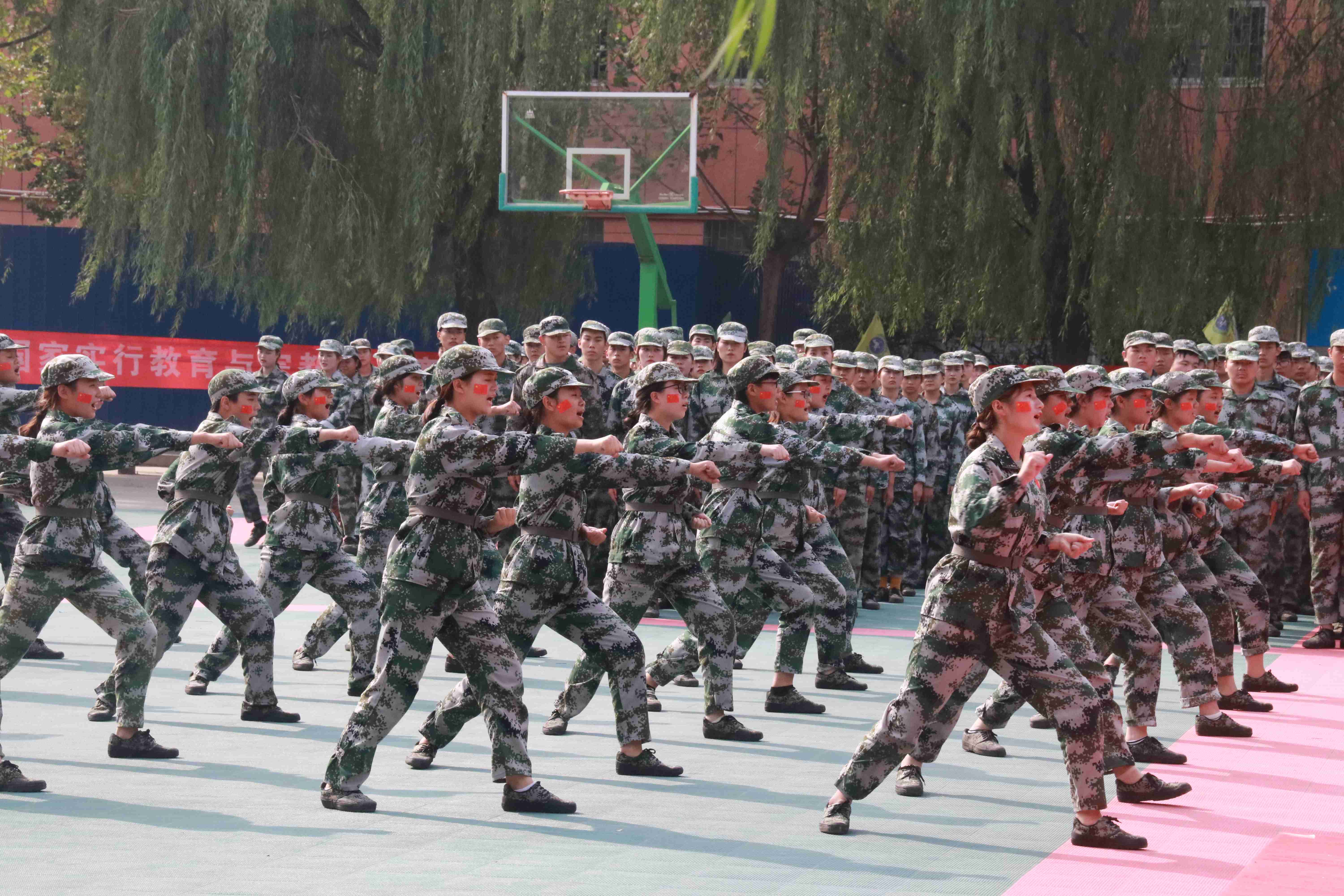 紧接着各区队代表进行了军体拳、内务整理、队列示范等多项军事技能汇报表演,赢得了现场观众的阵阵掌声。挺拔的身姿、连贯的动作,练就钢铁一般的意志;有力的臂膀、敏捷的身手,彰显威武不屈的气势。