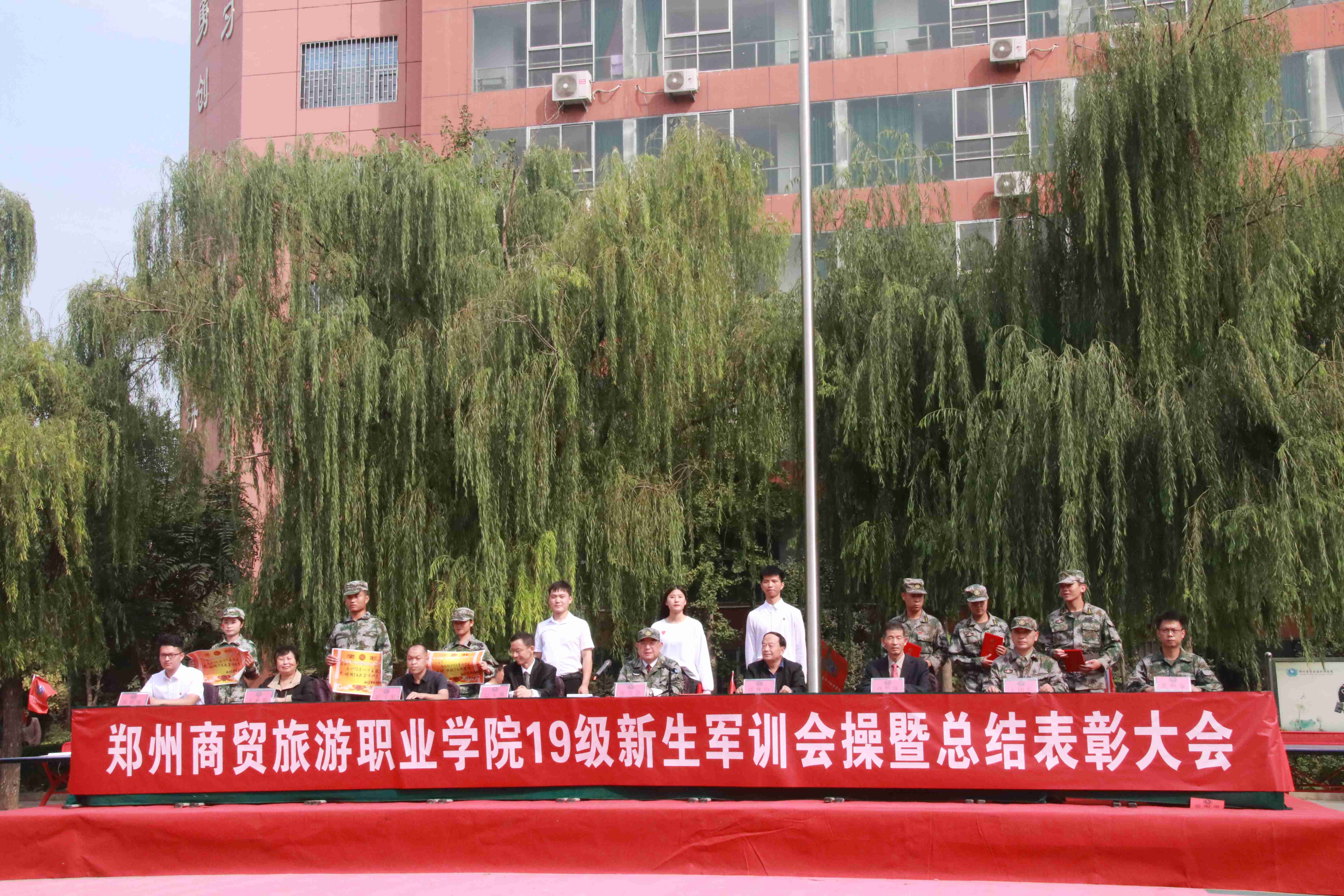 会操后,郑州商贸旅游职业学院党委书记郭林山宣读2019年军训表彰决定,表彰了优秀军训标兵、优秀教官、优秀参训辅导员以及先进集体,他们在军训期间的吃苦耐劳、表现优异,学院领导亲自为他们颁奖祝贺。军训标兵代表、优秀教官代表、优秀辅导员代表分别发言。