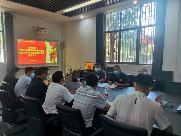 9月8日上午,中原区教育局民办教育科赵振江书记、史红伟老师一行莅临我校督导检查2021年秋季学期开学前准备工作。党委副书记郭林山,学校新冠疫情防控工作专班负责人张明强,后勤处副处长吴刚,学生处处长姜昭明,教务处副处长郭小汇及相关处室负责人陪同督查。