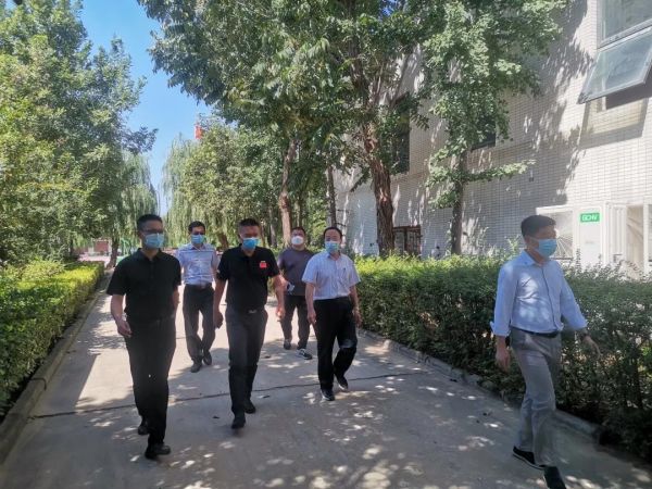 赵振江书记一行先后到校门口、教学楼、宿舍、餐厅、校医室、物资储备室、隔离观察室等地进行了检查指导。在校门口,督导组询问了门卫值守制度,了解了学校开学后关于疫情防控“严把入门关”的相关措施。在教学楼,督导组对教室、洗手间、开水间等场所进行了详细查看。查看学生宿舍和餐厅时,督导组详细听取了学校对开学后住校生学生住宿、健康监测、宿舍消杀、学生就餐等方面所做的预案。在学校物资储备室,督导组详细了解了口罩、测温枪、防护服、消毒液等疫情防控物品的储备数量,对学校较为充足的物资储备给予了肯定。督导组还专门查看了学校设置的隔离观察室,并就隔离工作的具体操作进行了详细的询问。