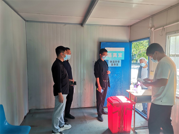 赵振江书记一行四人先后到我校门口扫码排队区、测温区、医务室、防疫物资储备仓库、教学楼、餐厅、学生宿舍、隔离室等重点区域和关键环节进行了实地查看。