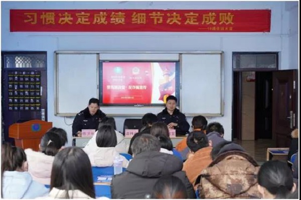 党委副书记郭林山首先致辞,对须水派出所所长郑君贤一行莅临我校表示热烈的欢迎,他指出,近年来,电信网络新型诈骗案件呈高发趋势,严重影响了社会和谐稳定。我校高度重视预防电信网络诈骗工作,采取多种措施,切实增强广大师生对电信诈骗的自我防范意识。未来我校会继续加强组织领导,认真开展专题班会教育,配合多种宣传方式,努力将反电诈教育工作落到实处。