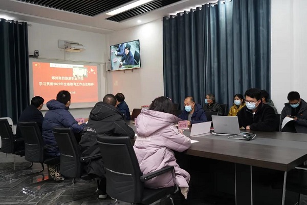 为学习贯彻2022年全省教育工作会议精神, 1月23日上午,郑州商贸旅游职业学院召开学习贯彻2022年全省教育工作会议精神大会,董事长席青慧,党委书记李普涛,党委副书记郭林山、张海斌、郭宝宪,副院长王素湘、唐绍成等领导出席会议,中层干部、党总支委员以及支部书记参加会议,会议由党委副书记张海斌主持。