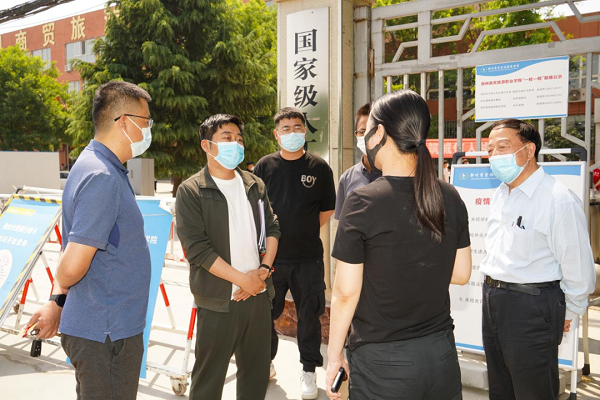 5月6日上午,中原区教育局党组成员、副局长孙冰清,须水街道办事处武装部长张润文莅临我校督导检查疫情防控工作。党委副书记郭林山,学校新冠疫情防控工作专班负责人张明强,学生处副处长吴刚,校企合作办主任李万银陪同督查。