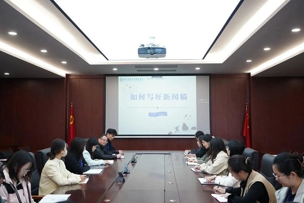为深入学习贯彻习近平总书记对宣传思想文化工作作出的重要指示和全国宣传思想文化工作会议精神,进一步加强我校宣传队伍建设,提升我校通讯员队伍的新闻素养和业务能力,10月25日上午,我校在四楼会议室召开全校新闻宣传通讯员培训交流会,校党委宣传部副部长季月月为参会通讯员授课。会议采用线上线下相结合的方式进行。