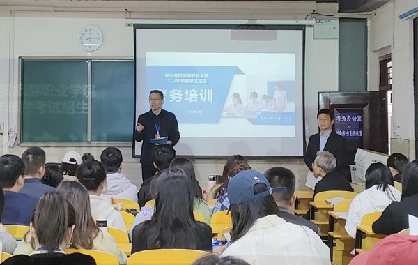教务处副处长马小伟对本次单独考试招生的考务工作节点安排、考试实施程序、考试规范化用语、监考员工作流程和监考员职责等工作进行了详细说明。人文旅游学院副院长郭小汇对考场秩序、考生入场流程、板书等方面进行补充说明。(通讯员:魏梦梦)