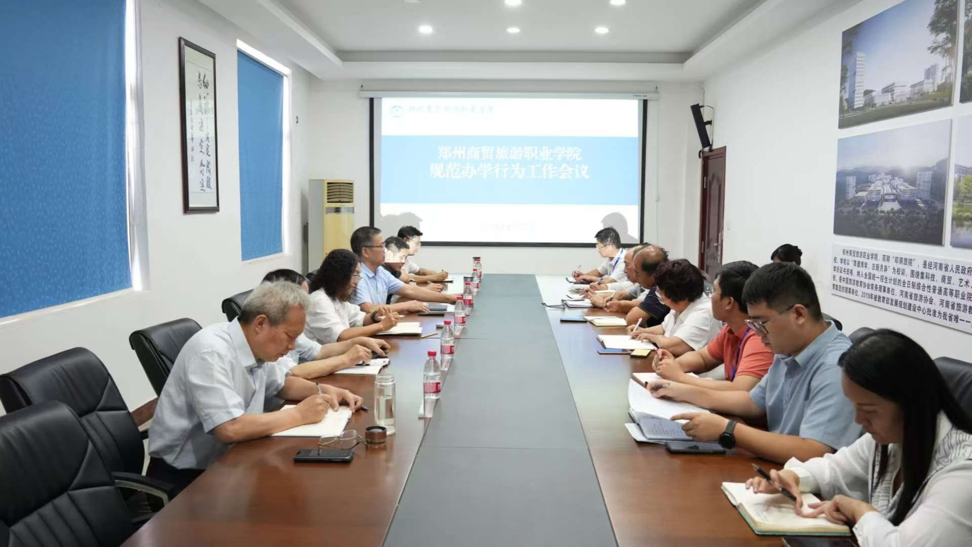 8月30日,我校在新密校区办公楼二楼会议室召开规范办学行为工作会议。学校党政领导班子成员出席会议,校企合作办公室、教务处、各二级学院负责人参加会议。会议由校长郭国侠主持。