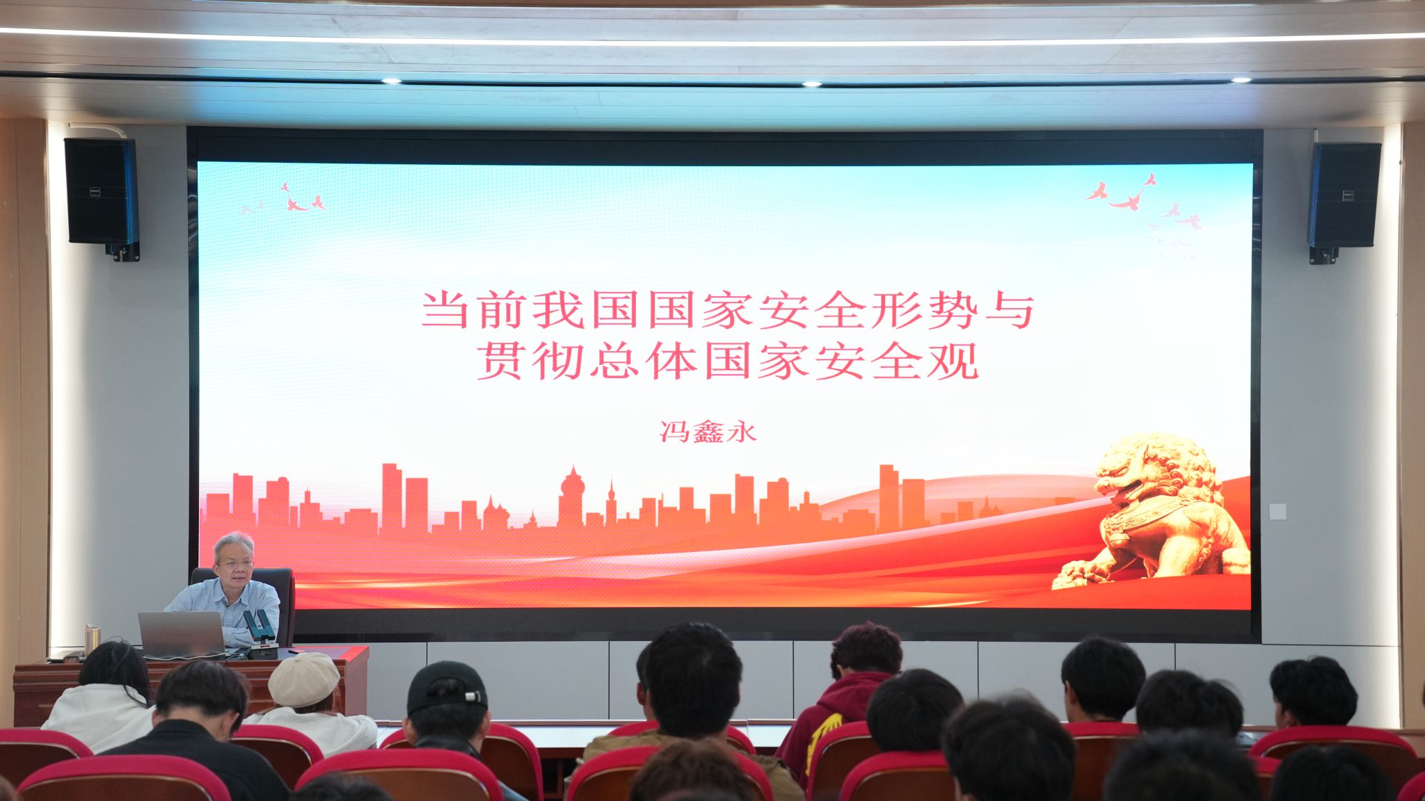 课堂上,冯校长围绕国家安全及其重要性、当前我国的国家安全形势、贯彻总体国家安全观三个方面,从历史的视角切入,深刻阐述了新时代全面贯彻总体国家安全观、开创国家安全工作新局面的丰富内涵。通过典型的热点案例、翔实的权威数据、深刻的时政分析,以俄乌战争、巴以冲突为切入点,分析了国内外的安全形势,引导学生认识中国和平发展的重要性,引导师生学习领悟总体国家安全观的深刻内涵,切实增强维护国家安全责任感和使命感。