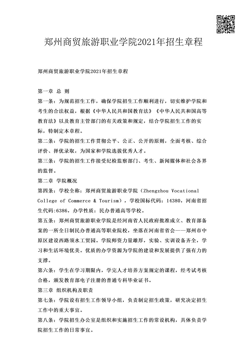 2021年招生章程