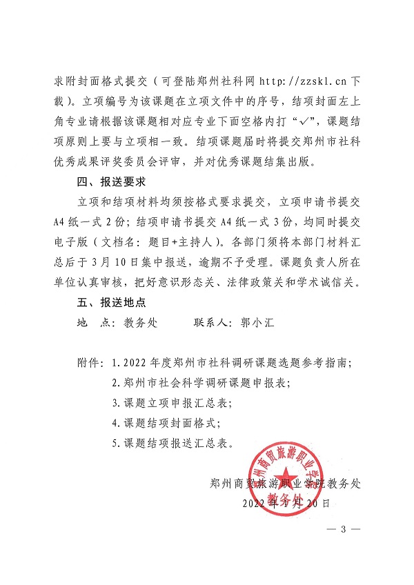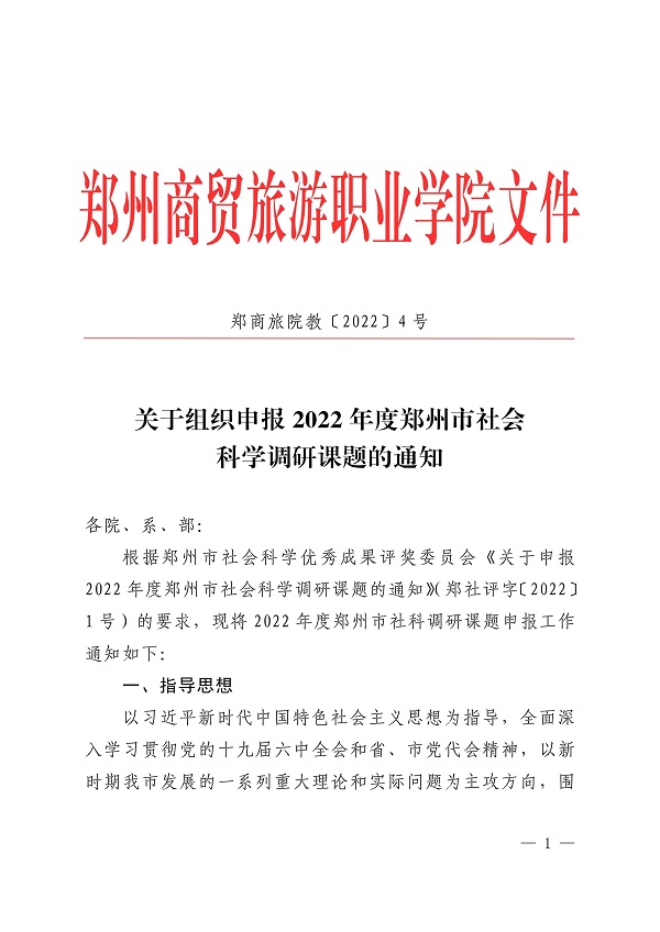 郑州商贸旅游职业学院关于组织申报2022年度郑州市社会科学调研课题的通知
