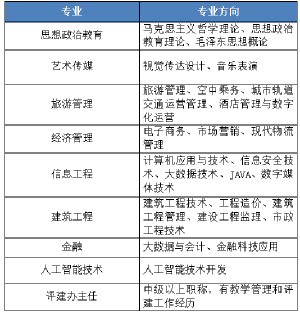 3.本科、硕士各阶段所学专业应一致或相近,应聘专业教师应具有硕士学位及以上学位;应聘专业带头人应具有副教授及以上职称;