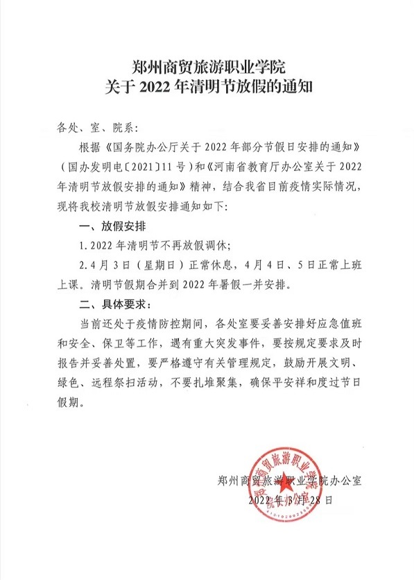 关于2022年清明节放假的通知