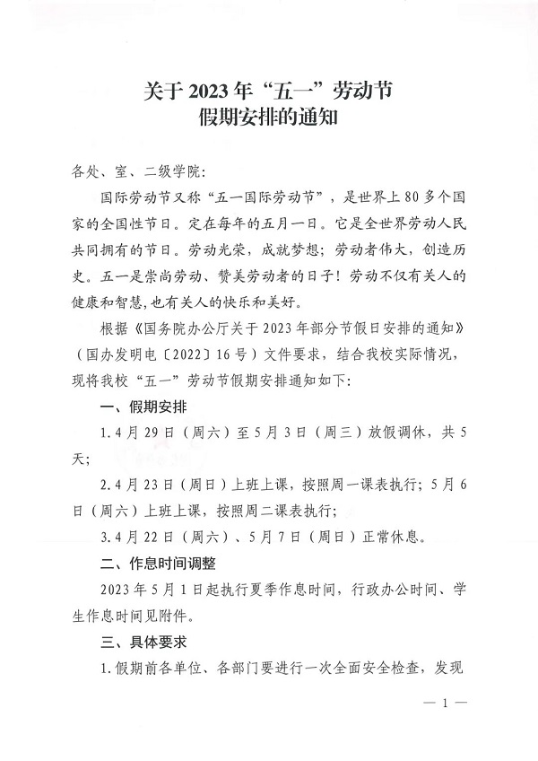 关于2023年“五一”劳动节假期安排的通知