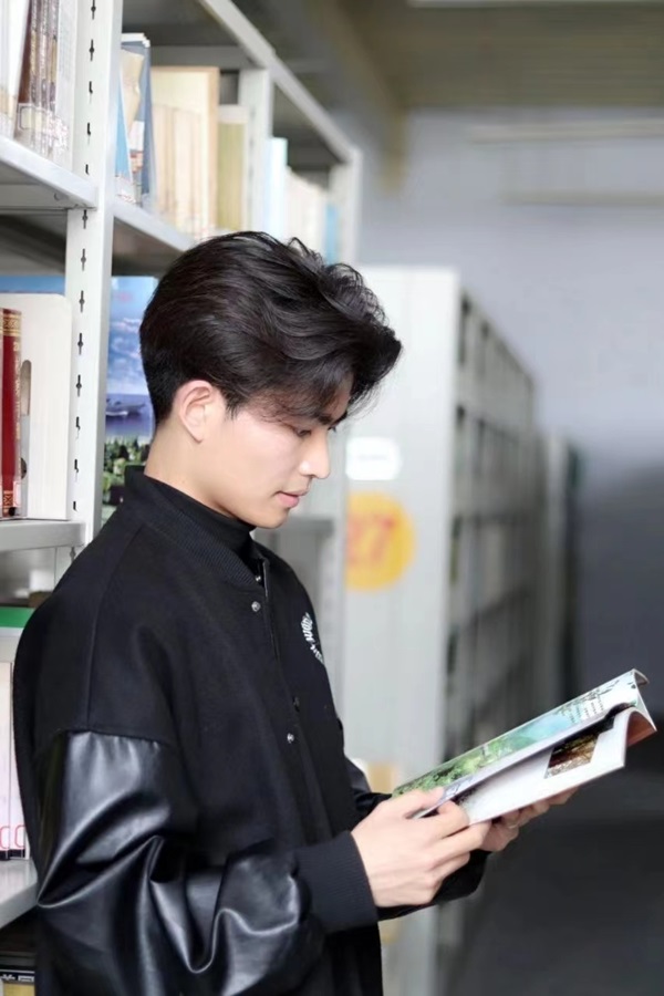 和手握书籍的他