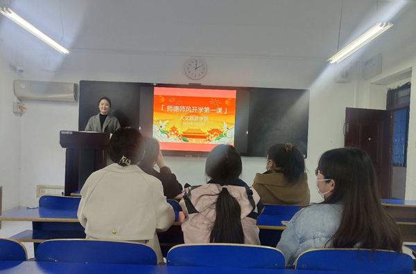3月20日,人文旅游学院开展了“师德师风第一课”学习活动。本次活动由教学秘书郭宏宇主持,人文旅游学院全体教师参与学习。