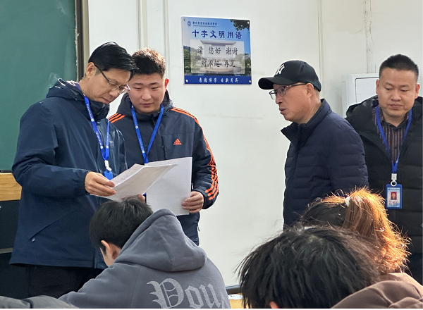 2023-2024学年第一学期期末考试工作本周拉开帷幕。1月9日上午,副校长康勇、教务处副处长马小伟等深入新密校区各考场对期末考试工作进行巡视检查,机电工程学院院长王奎英、建筑工程学院院长丁宪良、学生处负责人范春兵陪同巡查。