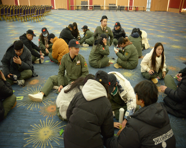 仪式结束后,依次进行了“破冰启航”“我是一个兵”“团队文化组建”“汉诺塔”“激情一刻”“鼓动人生”“团队大拼图”等项目。活动现场气氛热烈,同学们情绪高昂、奋勇争先,面对不同的挑战,各团队成员互帮互助、相互鼓励,展现出郑商旅院学子强大的团结力。