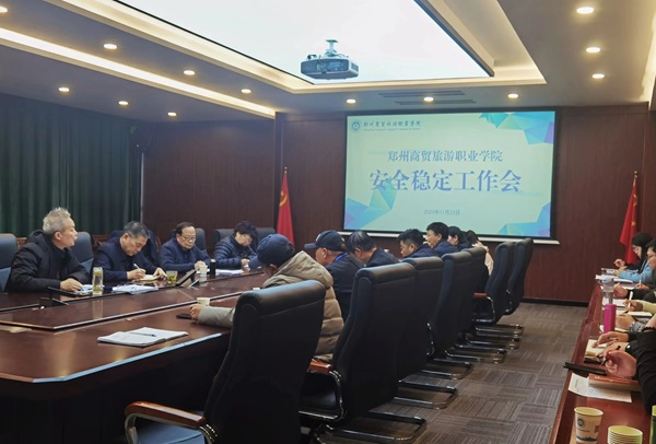 11月23日下午,我校在中原校区图书楼四楼会议室召开学校安全稳定工作会议,传达 学习全省教育系统安全稳定工作会议精神并部署学校安全稳定工作。校长郭国侠、校党委副书记郭林山、副校长冯鑫永出席会议,校长助理吴刚、新密校区管理委员会常务副主任黄智科及相关部门负责人参加会议。会议由校长办公室副主任江亚枫主持。