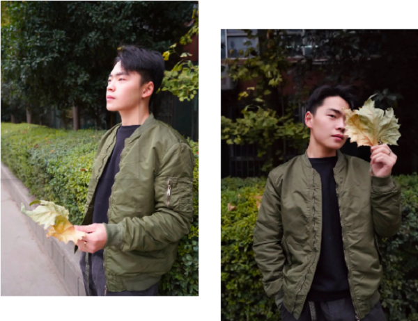 墨绿色的夹克外套