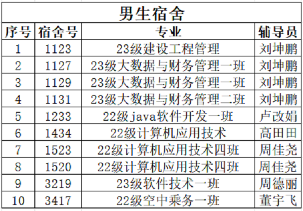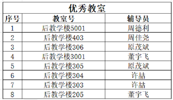 为了丰富学生课余文化活动,营造整洁、安全、文明、美丽的校园环境,增强同学们的自身修养,倡导健康向上、团结协作、温馨和谐的文化氛围,中原校区开展了文明校园评比活动。在此次活动中取得优秀文明宿舍20个、优秀班级8个,分别是以下: