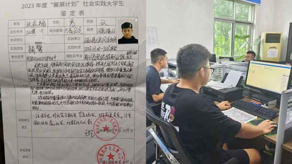 曾煜博,2023年暑期参加了信阳市商城县赤城街道办事处向基层报到政务实践活动。他主要负责协助办事处工作人员进行文档整理、表格梳理、下乡走访等工作。他表示,此次社会实践学到了很多知识和技能,锻炼了自己的品质和能力,还收获了家长的赞誉和信任、同事的友谊和支持、学校老师的肯定和鼓励,以后将以志愿者的身份参加更多活动,服务社会。
