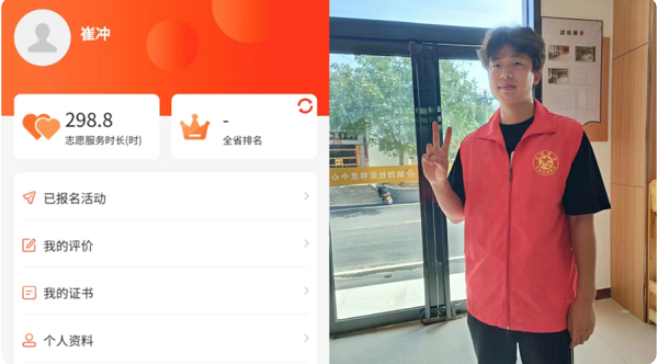 崔冲,参加了洛阳市孟津区朝阳镇镇政府组织的返乡实践活动,工作内容主要为:孟津区朝阳镇安全隐患排查工作;协助孟津区朝阳镇工作人员开展反诈宣传;随镇政府农办工作人员下乡视察;孟津区朝阳镇“燕归学子话家乡”图书整理活动;孟津区朝阳镇农办政务实践志愿服务等。在今后的工作学习中,他将以此次志愿服务的经历鞭策自己,继续弘扬志愿精神,为社会做出自己应尽的义务和贡献。
