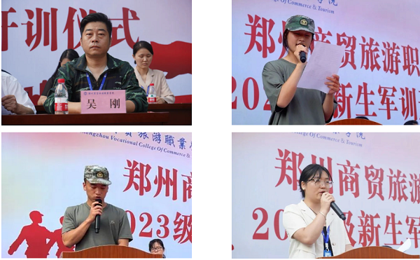 随后,由校长助理吴刚宣读《军训纪律十二条》,新生代表王婕、军训教官代表牛鹏钰、辅导员代表卢改娟分别发言。