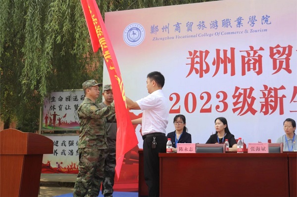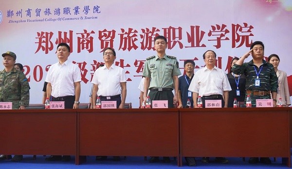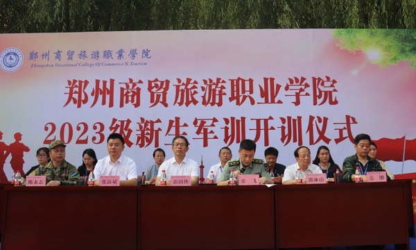 9月5日上午,郑州商贸旅游职业学院举行2023级新生军训开训仪式。中原区武装部副部长张飞,郑州商贸旅游职业学院校长郭国侠,党委副书记郭林山、张海斌,校长助理吴刚,相关部门负责人出席会议。2023级全体新生参加会议。会议由校武装部第一副部长陈永志主持。
