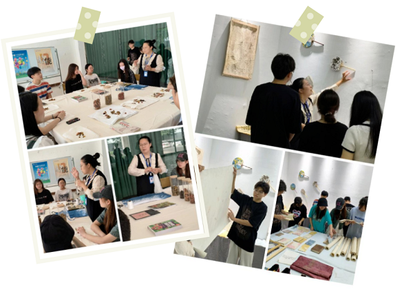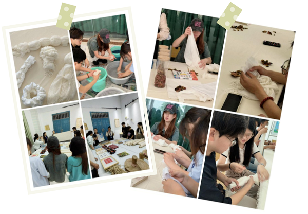 师生们充分发挥想象力和创造力,动手创作自己的扎染作品,大家兴致高涨,沉浸其中,用心体会扎染工艺,通过扎制图案、染色、拆线、洗涤、晾晒等各道工序,真真切切地感受了这项民间技艺的魅力。