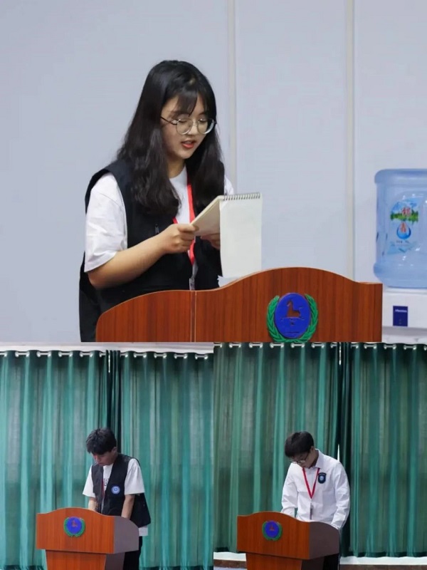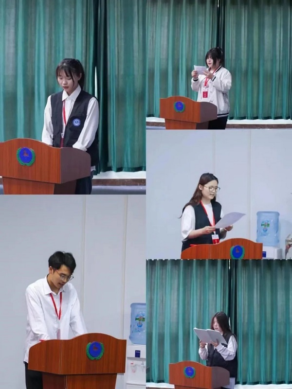 摄影技术部部长张莉萍、编辑运营部部长程扬扬、策划文案部部长吕珍羽、微博运营部部长朱豆豆、办公室部长黄俊阳依次上台汇报本学期工作情况,汇报内容围绕工作总结、经验分享、未来工作计划等内容展开。