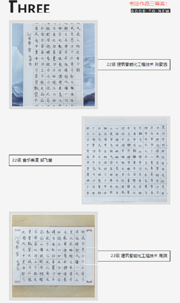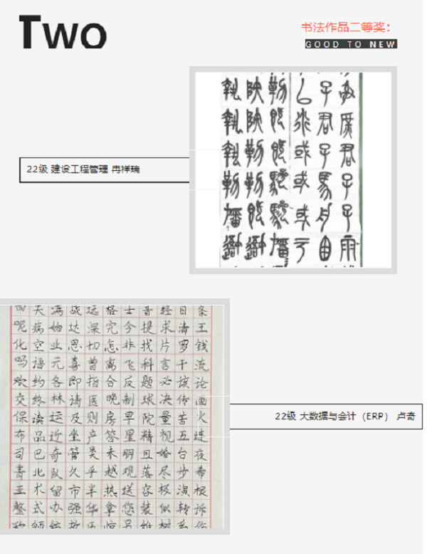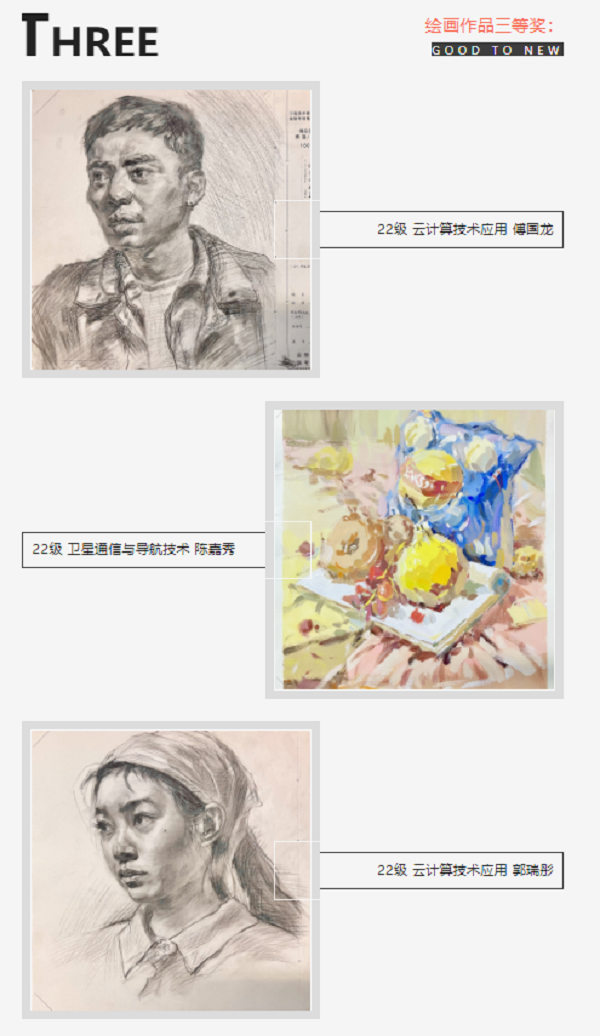 此次活动同学们参赛热情高涨,作品质量上乘。其中,书法作品苍劲有力、笔道均匀;绘画作品种类齐全、内容丰富,充分展现郑商旅学子崇高的审美追求和高尚的人格修养。经团委办公室初筛,艺术传媒系主任李雪艳,骨干教师王琳、魏梦梦把关,现将获奖名单公示如下: