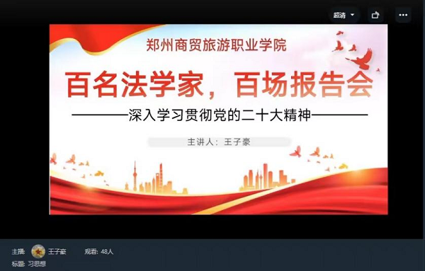 为深入学习贯彻习近平法治思想,11月14日,我校思政部教师通过钉钉会议相继组织开展以坚持建设中国特色社会主义法治体系为主题的“百名法学家百场报告会”法治宣讲活动。学校各支部党员、预备党员、积极分子参与会议。