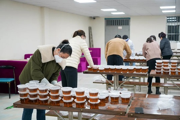 为更好保障全体师生员工的生命健康安全,助力校园疫情防控工作,学校根据河南省卫健委公布的预防新冠肺炎病毒配方,特别熬制预防新冠肺炎的中药汤剂,免费发放给在校师生。校领导、中层干部、党员教师加入志愿者队伍,不辞辛苦进行打包,一碗碗冒着热气的汤剂温暖了每一位师生的心。