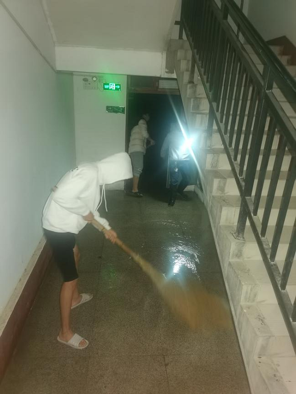 10月16号凌晨2点,值班人员巡查发现教学楼一楼东侧消防栓管道炸裂。我校后勤处黄家乐接到通知后,立即带领后勤处陈家鹏和郭文佳,以及范秀明、楚超鹏两位电工师傅前往现场进行抢修。与此同时,黄家乐还带领大家及时清除教学楼一楼走廊内积水,直至凌晨3点抢修完成,避免了事故的发生。