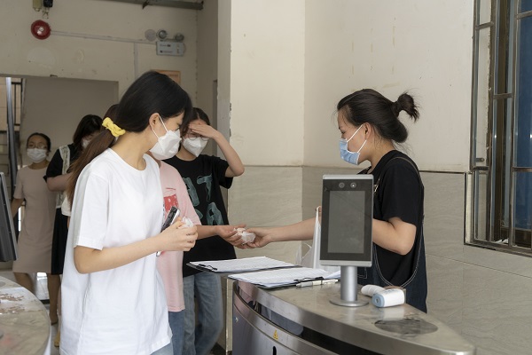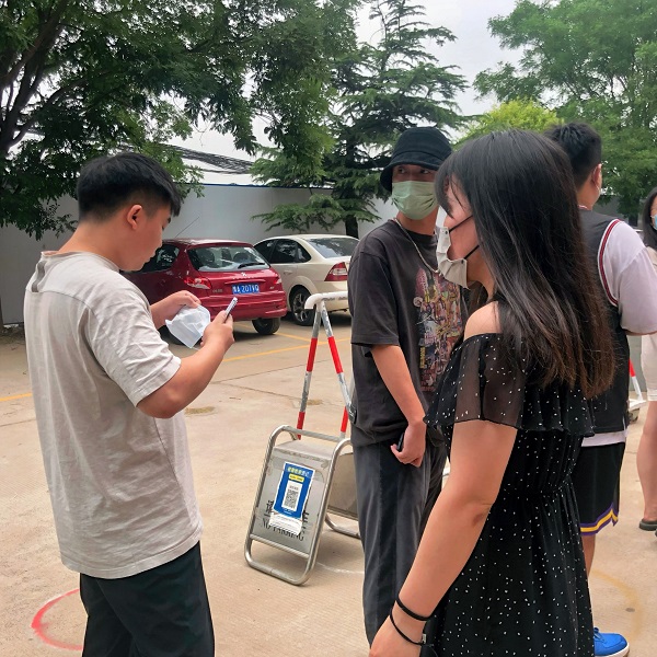 根据河南省、郑州市疫情防控要求,为确保专升本考试顺利进行,我校加强健康监测,加强核酸检测频次,严防校园疫情传播。教师们每日在宿舍楼为每位同学测量体温,积极维持核酸检测现场秩序,确保“不漏一人”。此外,为缓解学生们的考前焦虑,我校教师为考生有序分发爱心水果,为考生送温暖。