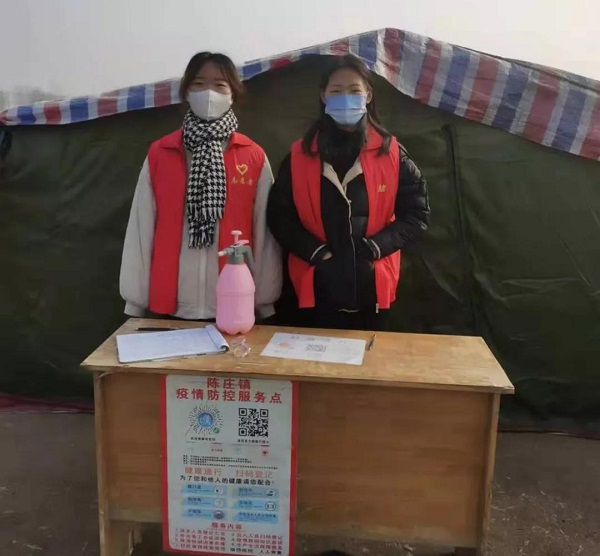 我现在商丘市柘城县申桥乡申桥村的防疫站内做一名志愿者,在防疫站内负责测量体温和村民的进出登记,查看健康码,能为我的村庄服务我很荣幸。