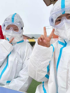 殚精竭虑、精益求精是学院办公室牛心雨老师的标签;锐意进取、团结向上是学院办公室许瑞老师的口头禅;不忘初心、牢记使命是学院办公室徐倩文老师的信念。她们戴上护目镜,身穿防护服,坚定地投入到疫情防控的战场。