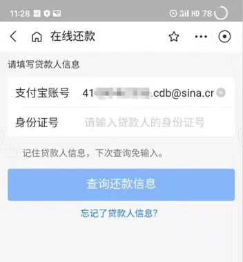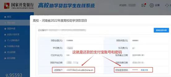 2.输入还款的支付宝账户,为助学贷款系统中的专用账户,在助学贷款学生在线系统中可以查看: