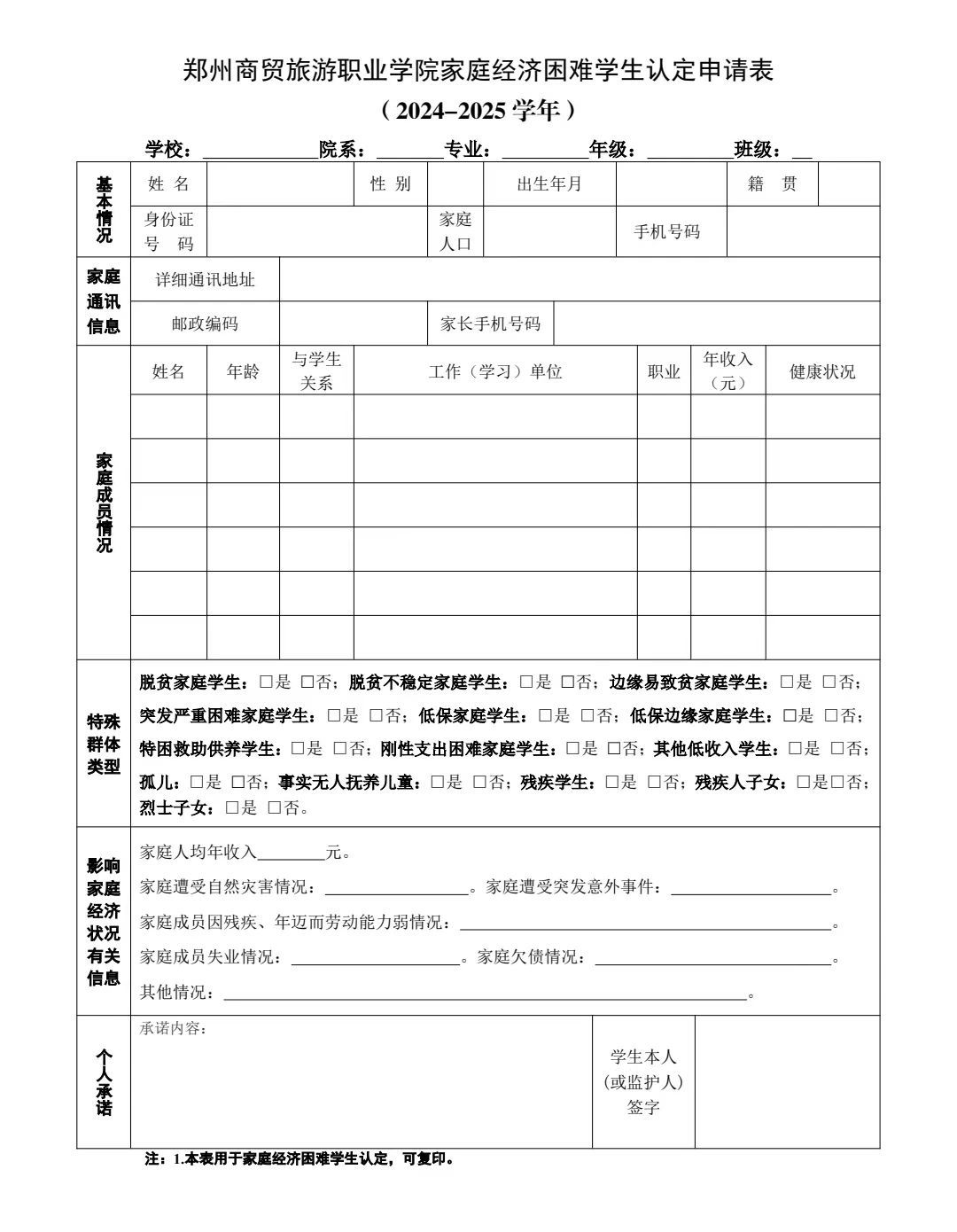 困难认定申请表填写要求