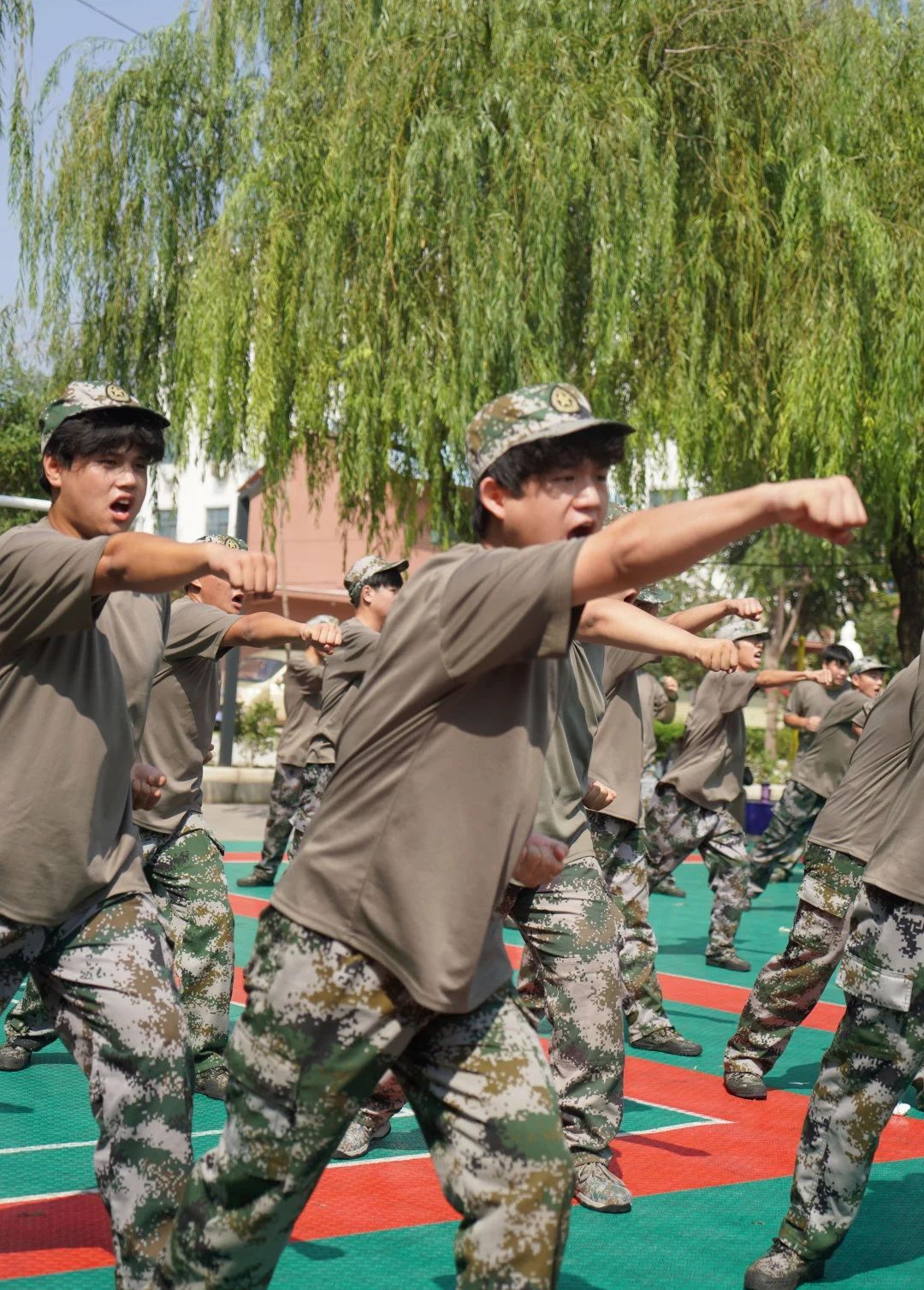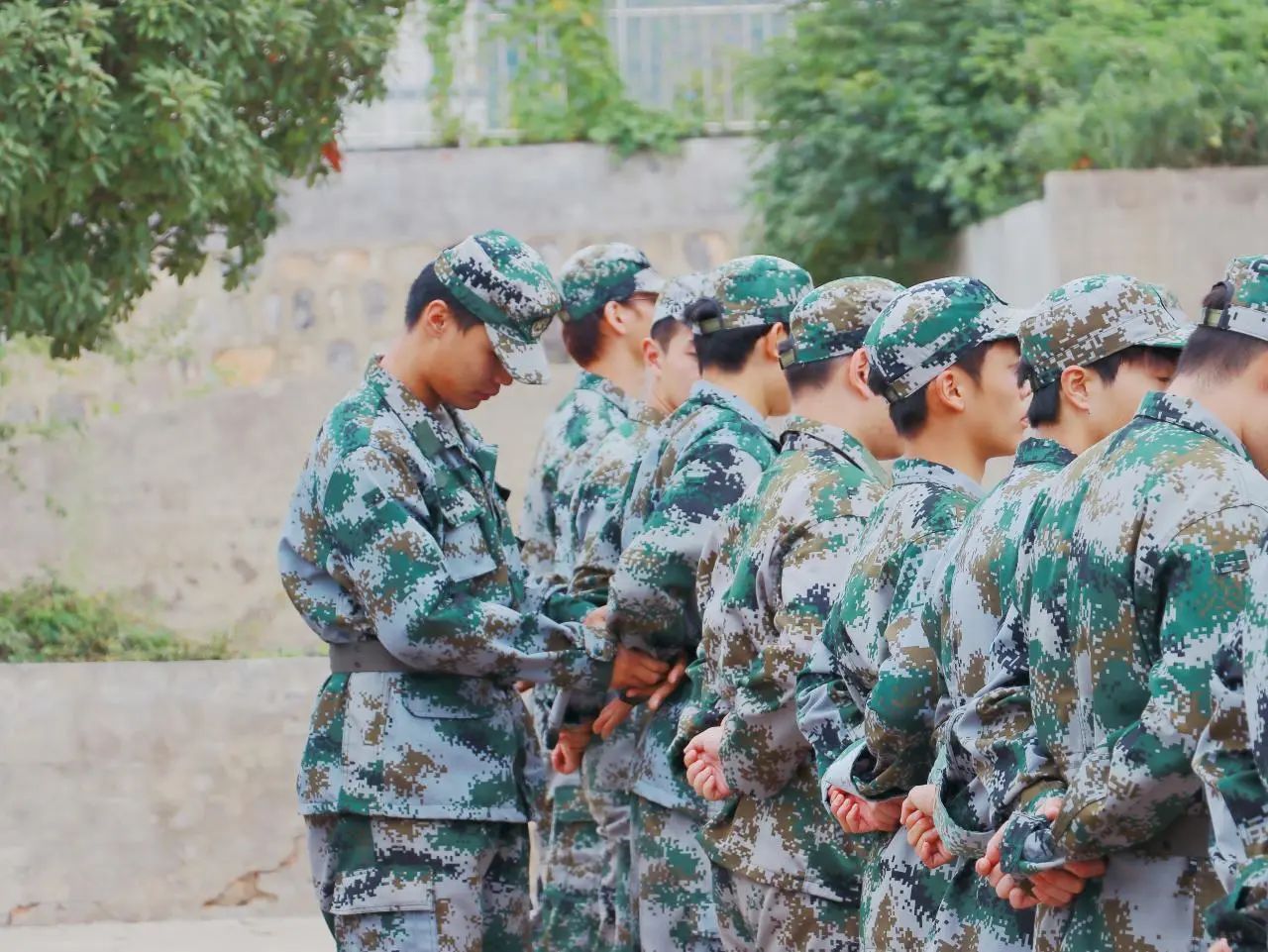 新生们身着迷彩服