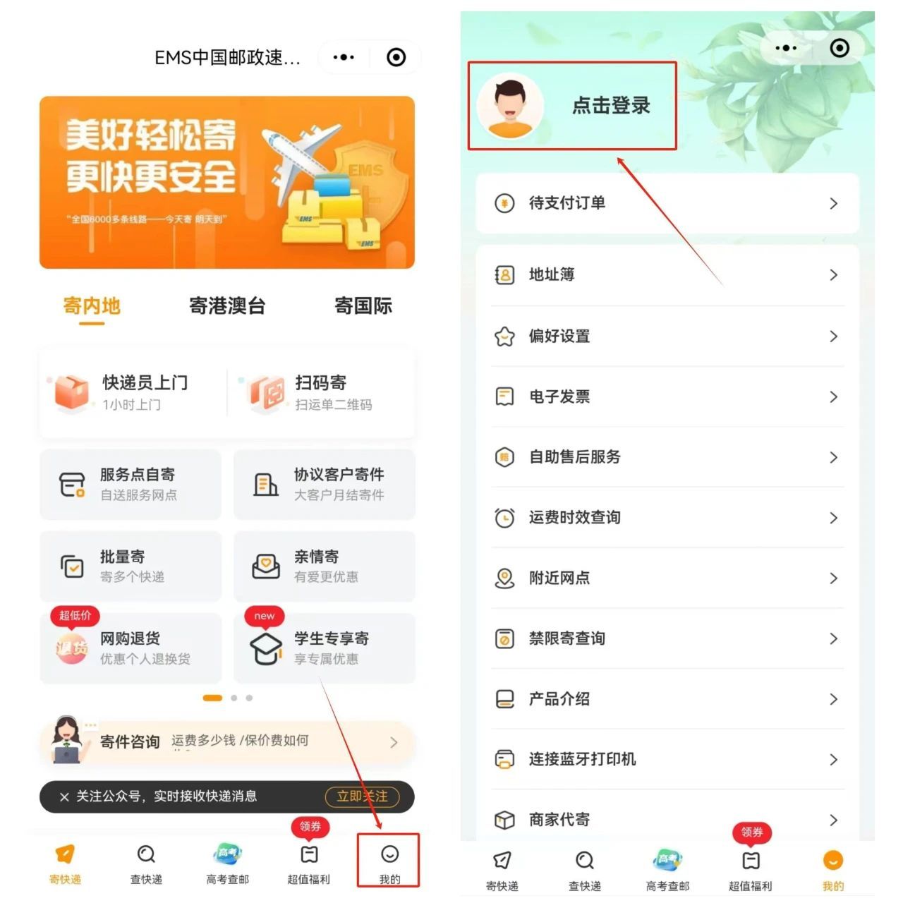 微信搜索“EMS中国邮政速递物流”小程序。